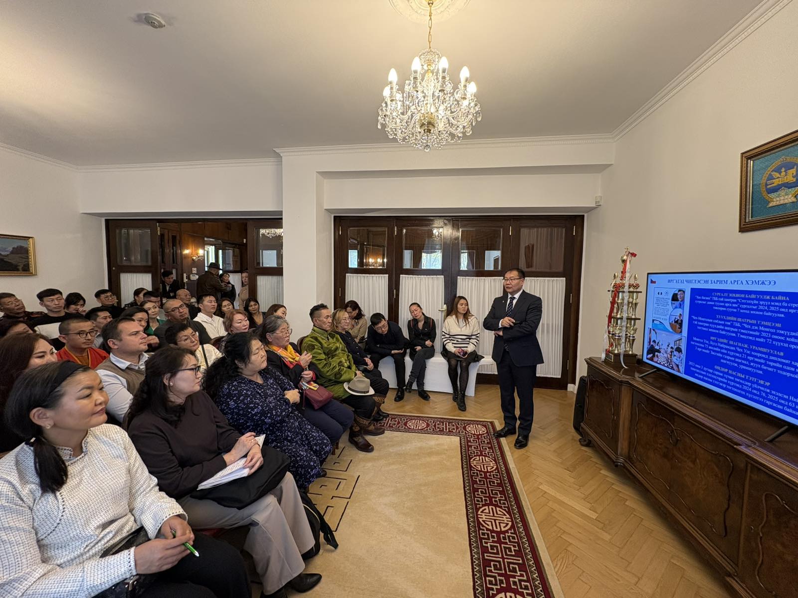 ЭСЯ-наас Бүгд Найрамдах Чех Улс дахь Монгол иргэдийн үүсгэл санаачлагаар байгуулагдсан холбоо, төрийн бус байгууллага, шүүхийн тамгатай орчуулагч, үйлдвэр, компанийн хэлмэрч, бизнес эрхлэгчид, урлаг, спортын салбарынхан, иргэдийн төлөөлөлтэй хийдэг уламжлалт нэгдсэн уулзалтыг 2025 оны 10 дугаар сарын 28-ны өдөр ЭСЯ-нд зохион байгуулав.