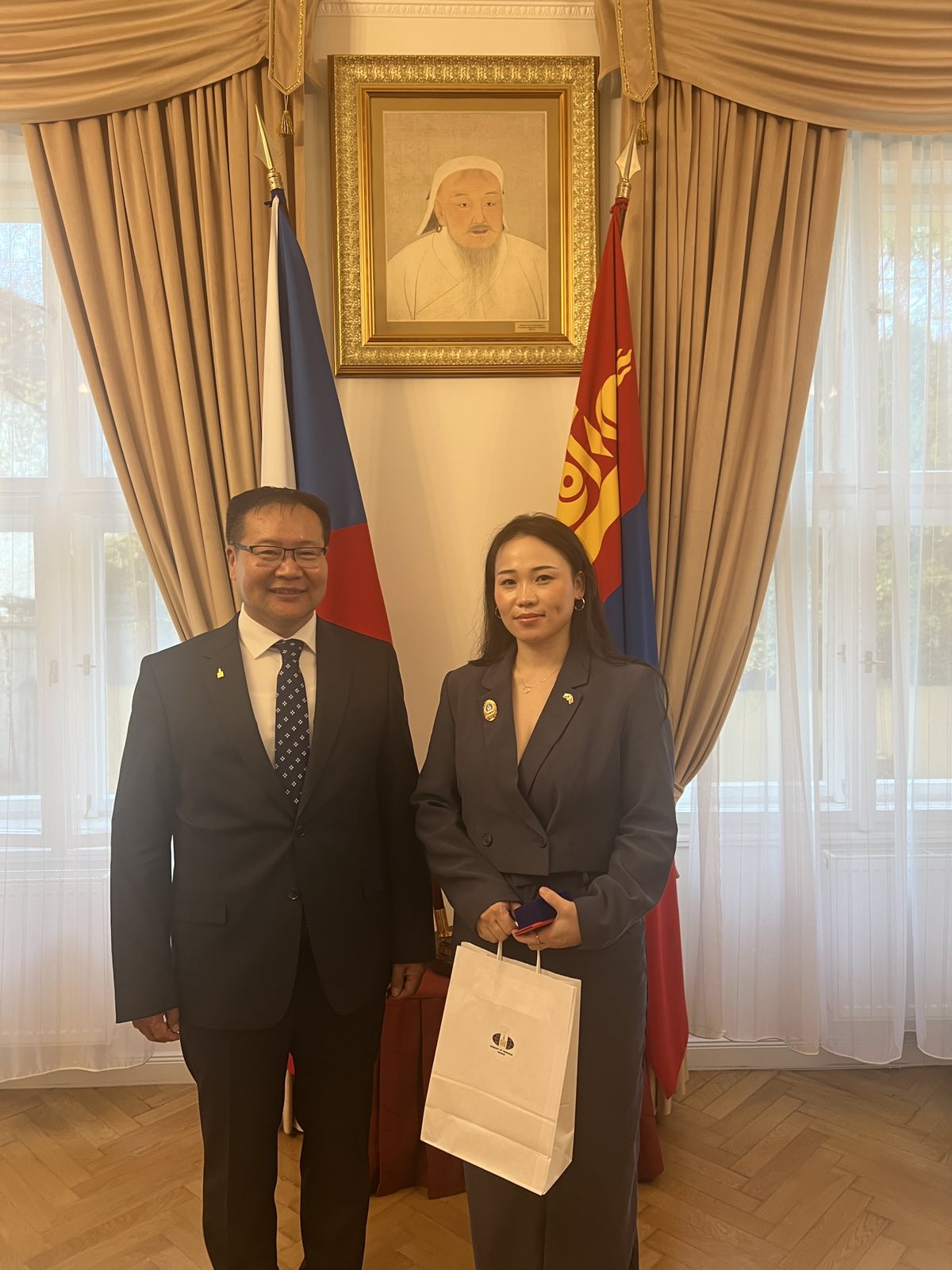 Уулзалтын үеэр Монгол Улсын Засгийн газрын шагнал “Нийгмийн хамгааллын салбарын тэргүүний ажилтан” тэмдгээр “Монгол Чех залуусын ирээдүй хөгжил” ТББ, “Чех дэх монгол ээжүүдийн бүлгэм”-ийг үүсгэн байгуулагч Г.Батцэцэгийг, Монгол Улсын Соёл, спорт, аялал жуулчлал, залуучуудын яамны “Жуух бичиг”-ээр Плзен хотын “Josef Kajetán Tyl”-ын нэрэмжит театрын дуучин Ц.Батсуурийг тус тус шагнасныг Элчин сайд Д.Гансүх гардуулж, баяр хүргэлээ.