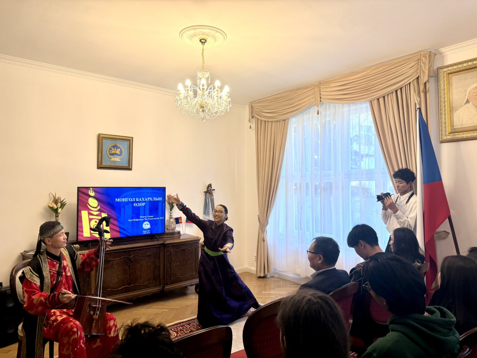 Хөтөлбөрийн хүрээнд Карлын их сургуулийн оюутан Г.Дөлгөөн Чех улсад суралцаж буй туршлага, сэтгэгдлээ хуваалцсан бол Карлын их сургуулийн Монгол судлалын тэнхимийн оюутан Феликса, Б.Сэлэнгэ нар Монгол судлалын тэнхимийн талаар танилцуулж, яагаад монгол судлалыг сонгосон тухай сонирхолтой яриа өрнүүлэв. Мөн Чехийн ТИС-ийн оюутан Э.Бадмаанямбуу, Б.Нандинцэцэг нар монгол бичгийн хичээнгүй тигийн талаар танилцуулж, оюутан бүр монгол бичгээр нэрээ бичив. Мост хотын "Ивээлт" морин хуурын төвийн багш, СТА Ц.Мөнх-Эрдэнэ ЭСЯ-ны хан хуурын хөгийг тааруулж, хүүхдүүд "Үүлэн бор", "Жонон", "Жалам хар" зэрэг аялгууг тоглож үзүүллээ. ТИС-ийн оюутан М.Ангараг, Г.Цолмонгэрэл нар монгол, гадаад оюутнуудад биелгээ зааж, бүжиглэж сонирхуулав.