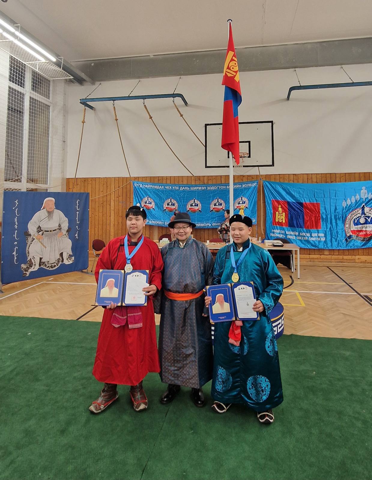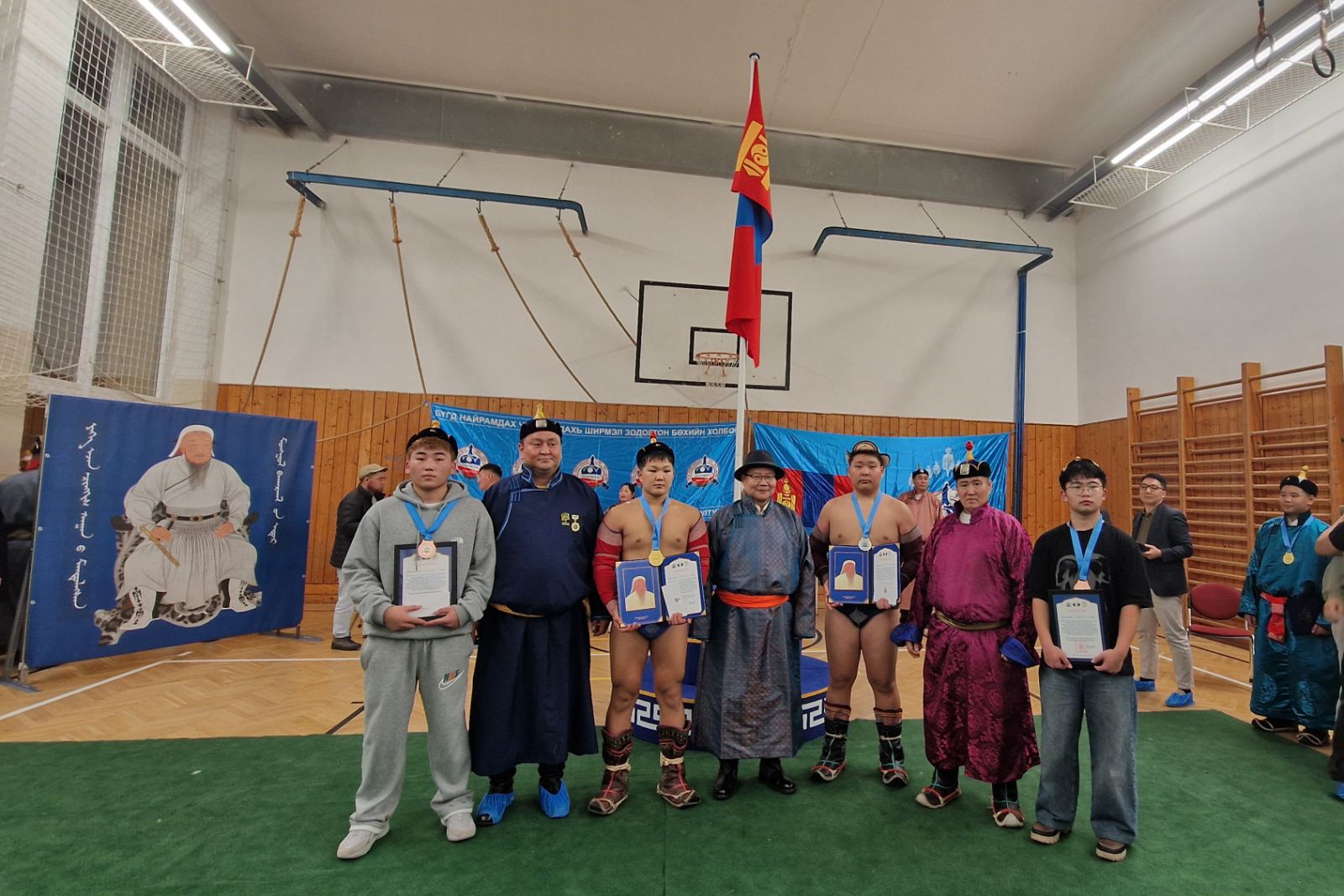 Бөхийн барилдааны нээлт дээр Элчин сайд Д.Гансүх Монгол үндэсний бөхийг сурталчлан таниулах, түгээн дэлгэрүүлэх, хүүхэд, багачуудад зааж сургах үйлсийг дэмжиж, манлайлж ажиллаж байгаад талархал илэрхийлж, “Ширмэл зодогтон” холбоонд хүүхдийн зодог, шуудаг гардуулж өгөв. Мөн тэмдэглэлт ойн өдрүүдийг тохиолдуулан “Ширмэл зодогтон” холбооны Удирдах зөвлөлийн гишүүд болох аймгийн харцага Ж.Билэгт, аймгийн начин Ө.Тулга, үндэсний бөхийн Улсын цоллооч, ахлах засуул, сумын заан Р.Банзар нарын аймгийн, сумын цолтой ахмад бөхчүүдэд ЭСЯ-наас хүндэтгэл үзүүлж, Их Эзэн Чингис хааны эш хөргийг дурсгаж, хадгалууллаа.
